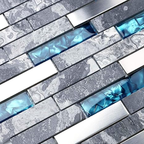 Hominter 5 Sheets Strips Marble Glass And Metal Tile Gray Mixed