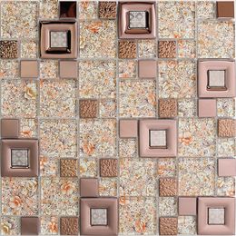 Gold Glass Mosaic Tile Backsplash Stainless Steel Metal Crystal Tile