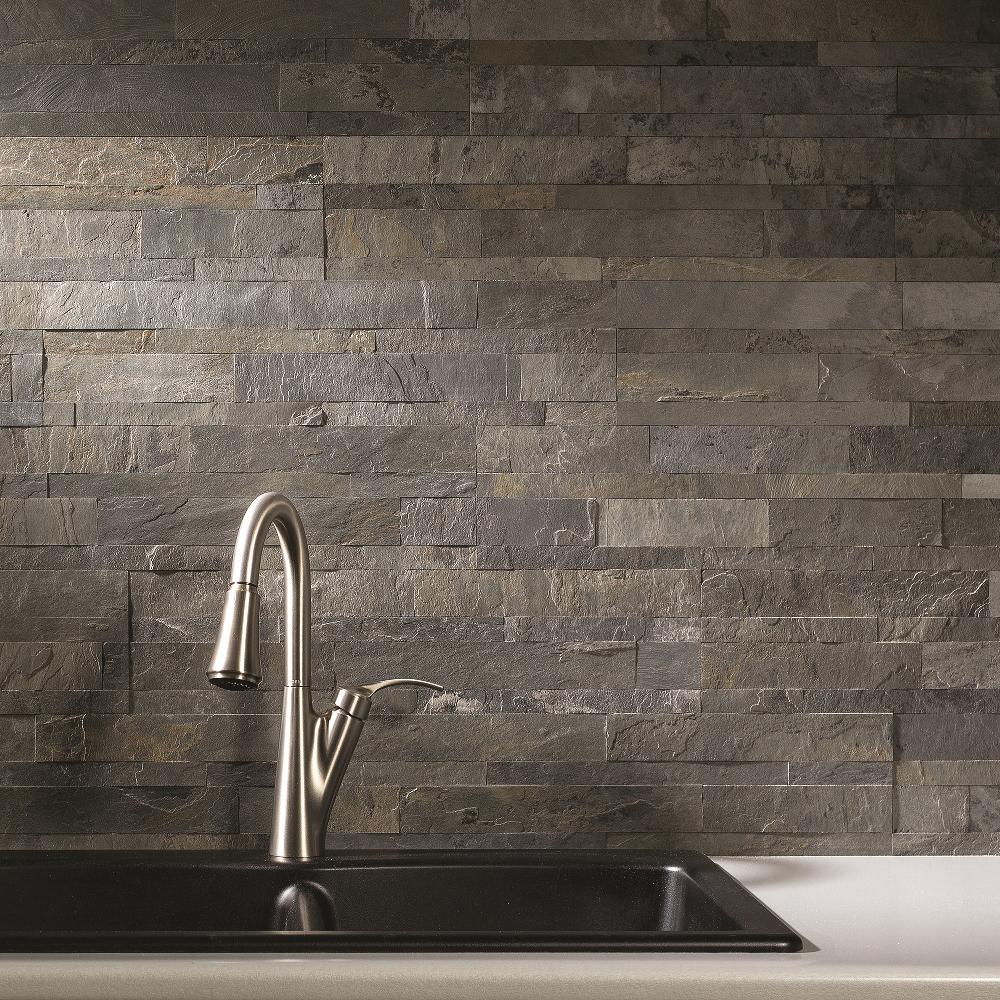 Aspect Backsplash Stone Tile In Charcoal Slate